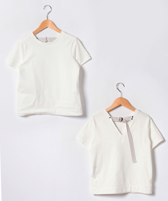 すっきりと詰まったクルーネックがクリーンな半袖Tシャツ。V字に開いたバックネックにはテープとDカンをあしらって、トレンドライクなアクセントをそれとなくプラス。
