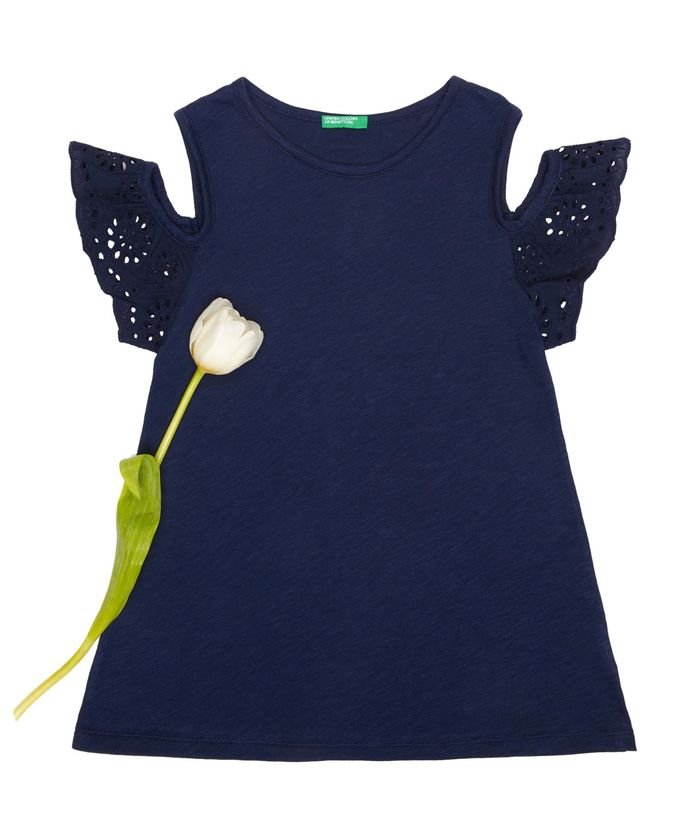 スリーブのレース使いが可愛らしい、オープンショルダーデザインのカットソートップス。ヌケ感のあるコーディネートを叶える1着は、ショートパンツを合わせて元気に着こなすのがオススメです。