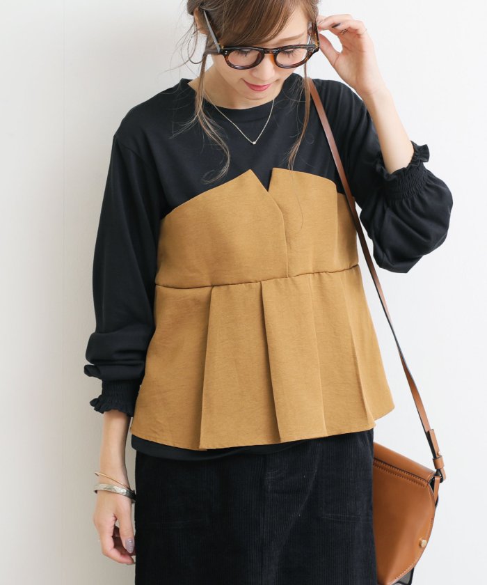 タック入りビスチェとTシャツが 一体型になったドッキングTOP♪ 人気アイテムの《長袖》版が新登場です♪ カットソー部分はクルーネック、袖口に ゴムが入ったバルーンタイプのお袖が ふんわりとフェミニンな印象に。 ビスチェ部分はフロントタック入りで お腹まわりの体型カバーもばっちり!! 背中はゴムシャーリング仕様で楽ちんです♪ 1枚さらっと着るだけでサマになる シーズンのオススメitemです! MODEL:身長158cm ※撮影時のライティング、ご覧になっているモニター・PC環境により 実際の商品と色味が異なって見える場合がございます。 ご了承の上お買い求め下さい。
