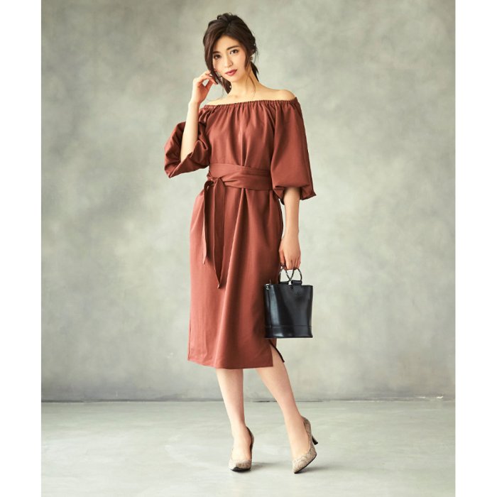 同布のサッシュベルトで、ウエストマークしたシルエットが女性らしいワンピース。 2way仕様のオフショルダーデザインで、適度な肌見せスタイルに。 トレンドのボリュームスリーブが、肩まわりや腕を華奢見えさせてくれます。 ON/OFF問わず着られるのが嬉しい、優秀アイテムです。