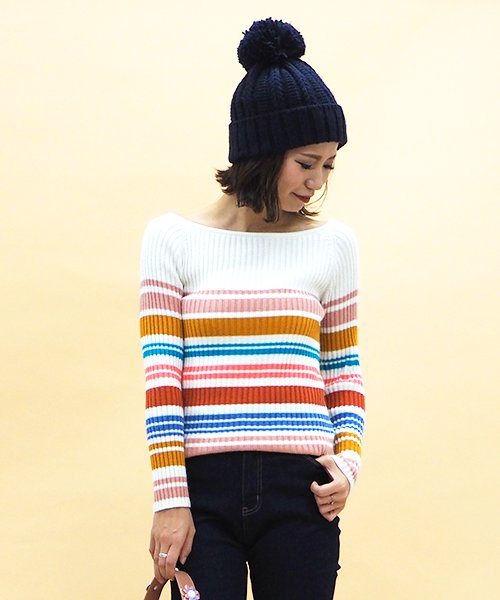 ◆◆Winter Collection◆◆ 今シーズンのトレンド柄の一つであるマルチボーダーのオフショルダーニットが登場。 そのままでも、オフショルダーでも着て頂けるデザインは、カジュアルなコーディネートから、シンプルなコーディネートのワンポイントにまで幅広く着回して頂けるアイテムとなっております。 適度にフィットするリブ編みニットは、ボトムインでもアウトでもすっきりとまとまりやすいスタイルに。1今シーズン注目の台形スカートや、ワイドパンツなどとの相性も◎ ※取り扱いについては、商品についている品質表示でご確認ください。 ※商品画像はサンプルのため、色味や仕様変更がある場合がございますので予めご了承ください。 ※画像と柄の位置が異なる場合がございます、ご了承下さい。 ※照明の関係により、実際よりもやや明るく見える場合がございます。またパソコンなどの環境により、若干製品と画像のカラーが異なる場合もございます。予めご了承ください。
