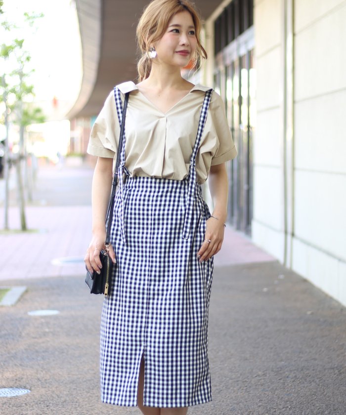 【WEB限定】ギンガムチェック&サスペンダー付スカート