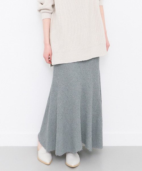 ・・・・・・・・・・・・・・ KBF COLLECTION 2016 SPRING/SUMMER ”LANDSCAPE” ・・・・・・・・・・・・・・ パイル地のような立体感のある風合いが可愛いニットスカート。ひらひらと動きのあるマーメイドシルエットが女性らしさを引き立ててくれて◎Tシャツやスニーカーを合わせたカジュアルなスタイリングを楽しむのがオススメ。ペチコート付きなので透け感を気にせず穿けるところも嬉しい。ディテールやカラー展開までKBFらしさが詰まった1枚です。