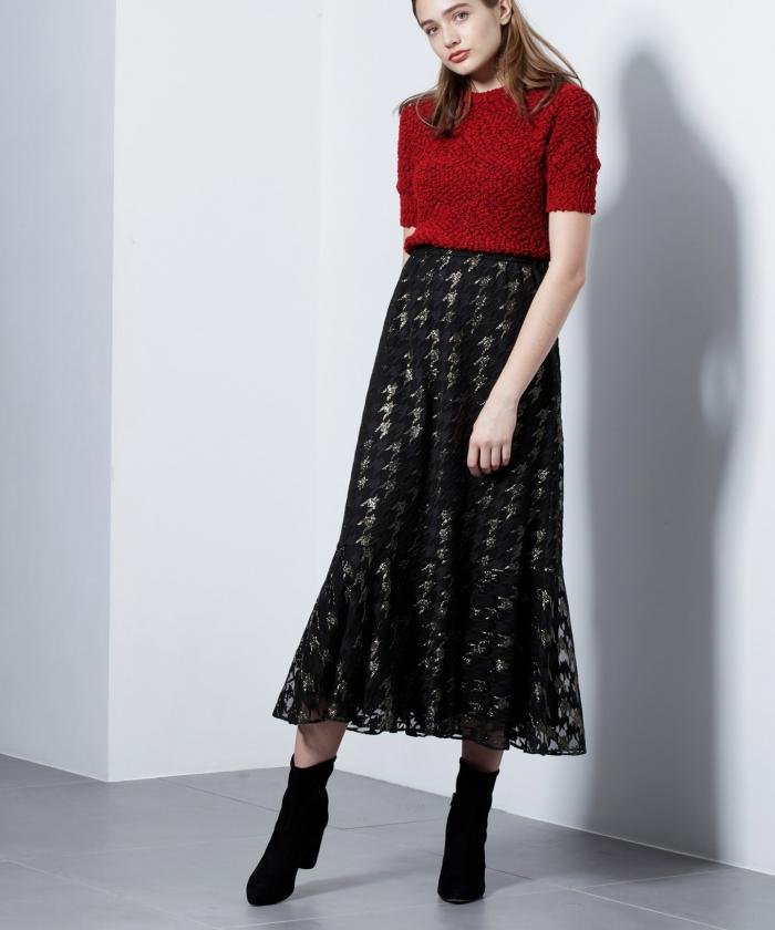 千鳥柄の刺繍を入れたチュールスカート。ラメ感があり、秋冬らしい華やかさのあるデザインです。