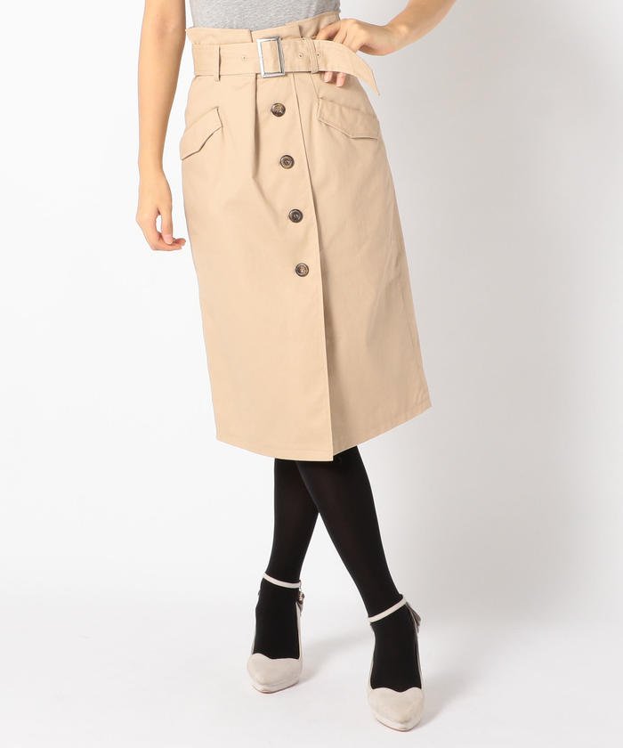 秋冬シーズンの新定番として大注目のトレンチスカート。ウエストに施した太目のベルトが印象的なタイトスカートは、きれい目にもカジュアルにも着こなせる1枚です。スタンダードなベージュカラーはトップスを選びません。
