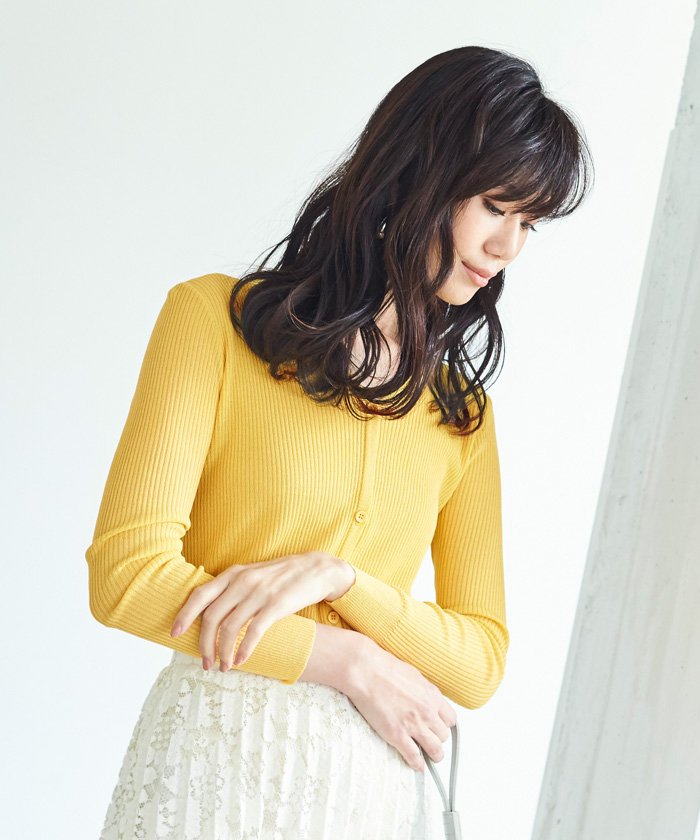 さり気ないラメ感が大人女子の装いにぴったりなVネックニットカーディガン。 サマーニット素材のさらりとした肌触りが心地よく涼し気で、日焼け対策にもぴったりな一枚。 前を閉じてトップスとして着用しても美しいシルエットに。 別売りのライトリブノースリーブニットと合わせて、 セットアップ風にコーディネートするのもおすすめです。