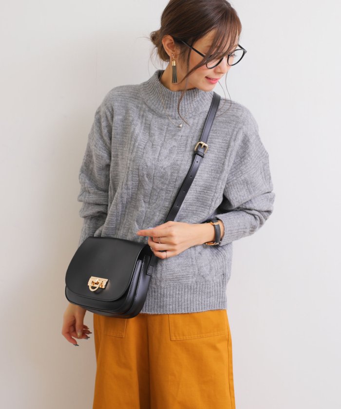 【B−7】ハイネック ケーブル ニット セーター トップス