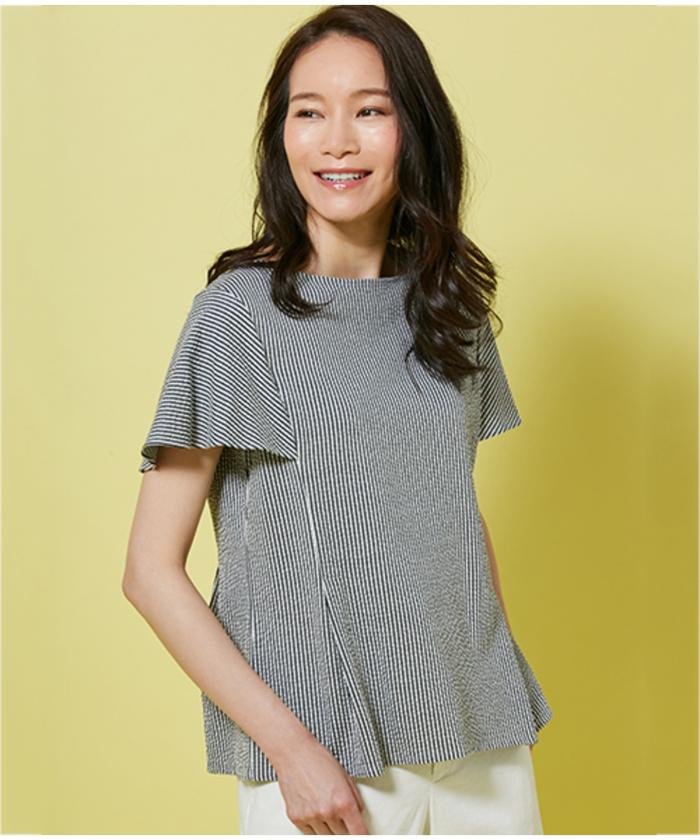 ★【2018夏のWEB限定】シアサッカーストライプ カットソー