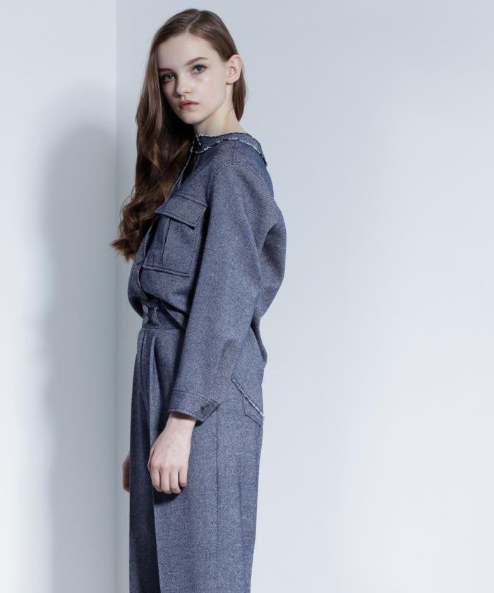 イタリアのNYTRO(ニトロ)社のスぺシャル別注でお作りした、落ち感のあるウール混デニムを使用したジャケット。デニムでもキレイ目に、かつ程よいラフ感をだすために生地の時点でワンウォッシュをし、落ち感を出したウール混のデニム素材を使用しています。ジャケットとしても、前を閉めてトップスとしても着ていただける、大人の印象の一枚です。