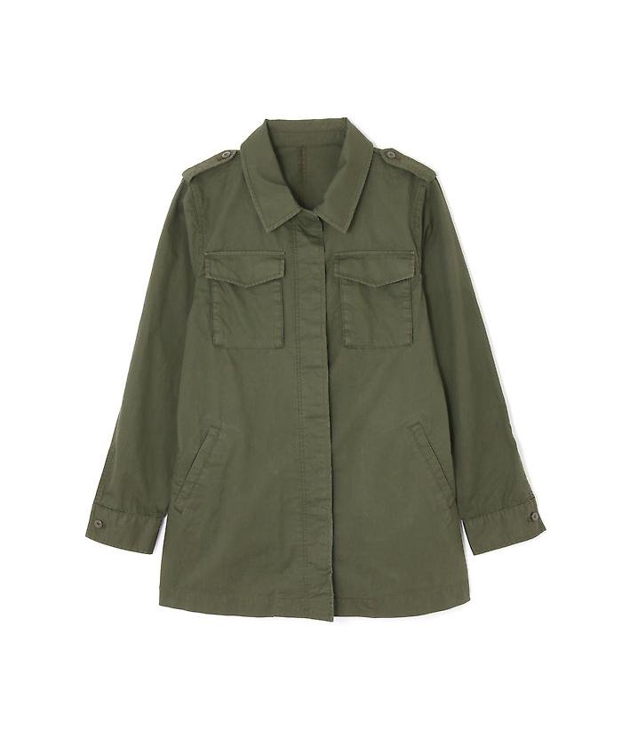 シャツ型のシンプルで着流しが出来るミリタリーブルゾン。比翼の余計な装飾を省いたシンプルデザインで、大人カジュアルな1枚。ラフにTシャツにミドル丈スカートや、デニムなど、印象を変えたコーディネートが完成。袖先を気温に合わせてロールアップしたりと、バランス調整をして女性らしさを足せます。