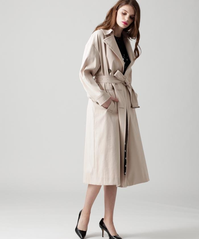 イタリアの歴史あるテキスタイルメーカーMANTECO(マンテコ)社のふわっと軽い高密度のダブルクロスコットンのトレンチコート。オーバーサイズとロング丈で羽織るだけで個性的に決まる、ロング丈がエレガントな雰囲気を醸し出します。高度な技術が要する一枚仕立ての縫製テクニックはまるで一枚の生地を纏うように、体に馴染む心地よい着心地。綺麗な素材とシンプルなデザインで長く愛用できるスペシャルな逸品です。袖をロールアップしたり、ウエストできゅっと締めて、優雅な遊びを効かせたムード感溢れるアウターコーディネートをお楽しみください。